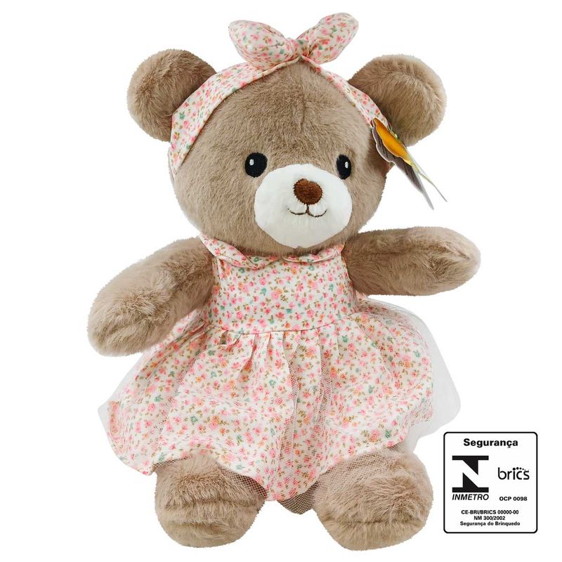 Urso de Pelúcia C/ Tiara 22cm em Poliéster Fizzy