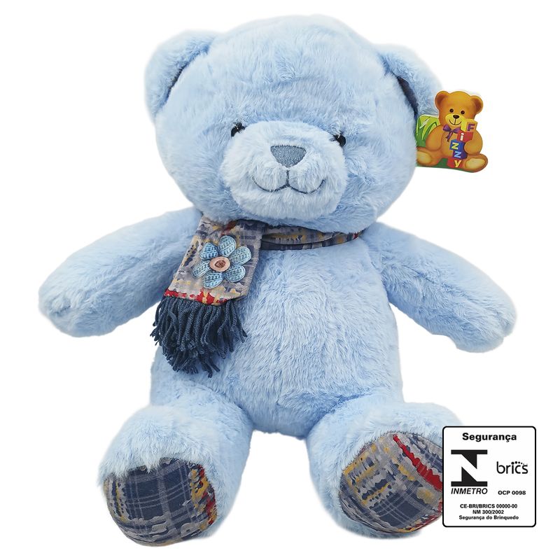 Urso de Pelúcia C/ Cachecol 33cm em Poliéster Fizzy