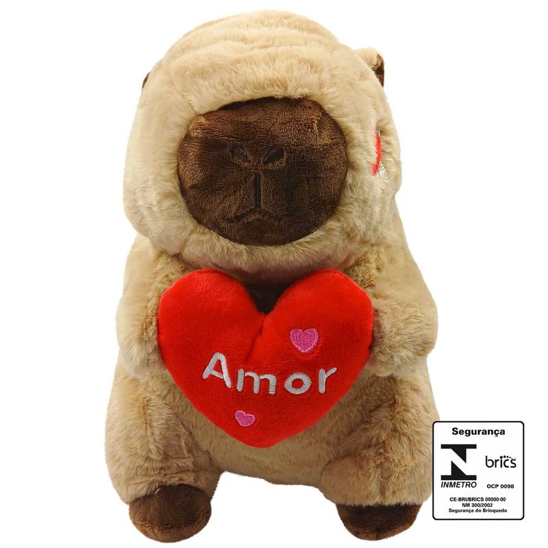 Capivara de Pelúcia Love 30cm em Poliéster Fizzy