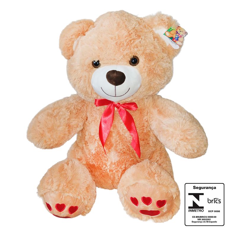 Urso De Pelúcia C/ Laço 58cm em Poliéster Fizzy