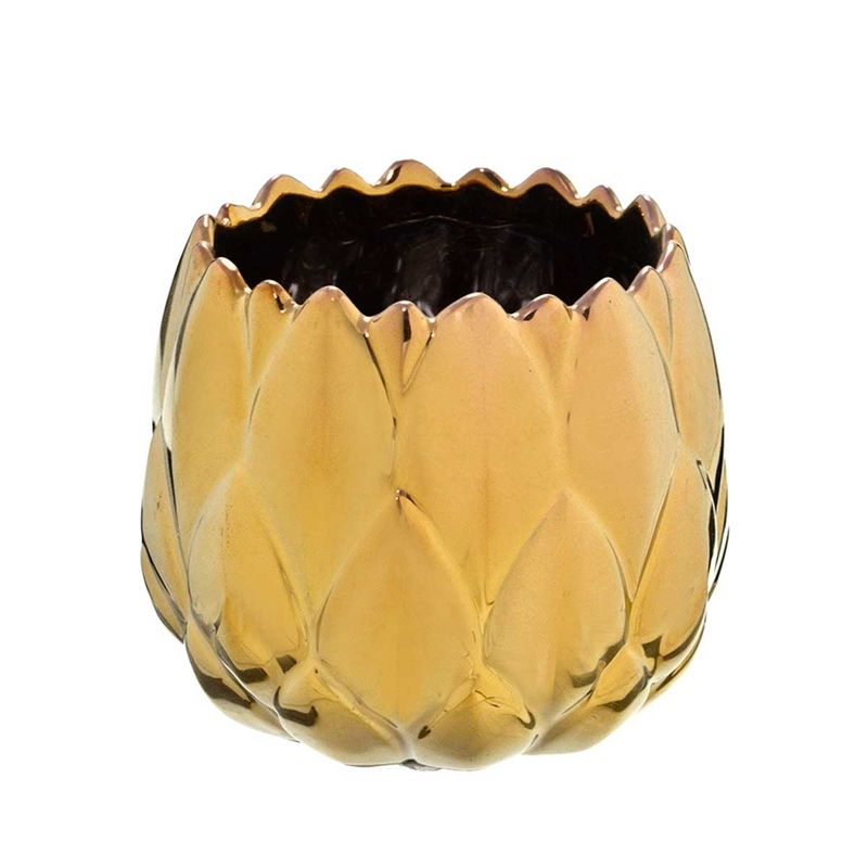 Vaso Cachepot Decorativo 10x11,5x11,5cm em Cerâmica Gold Mabruk