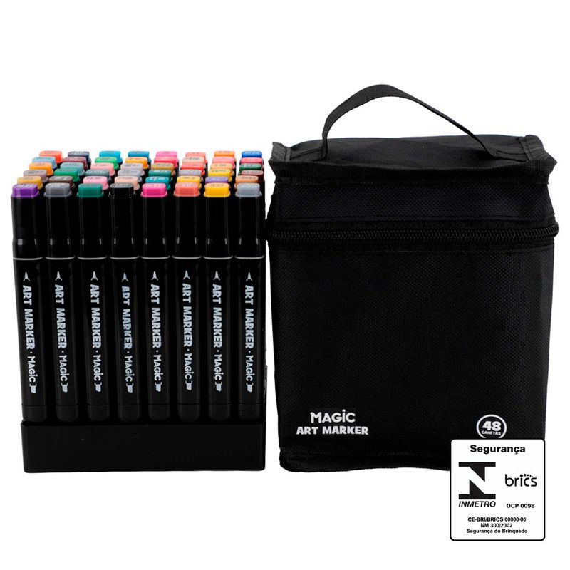 Kit Canetinha Ponta Dupla 48 Cores em Plástico Magic Kids