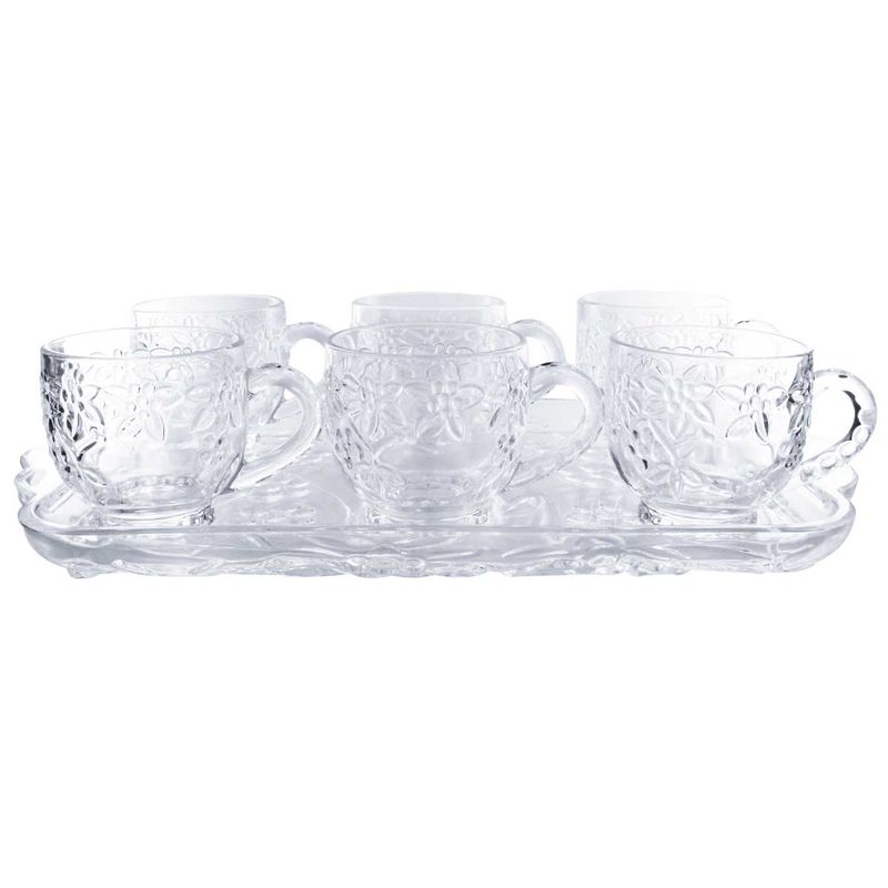 Jogo De Xícaras Flowers C/ Bandeja 7 Peças 190ml em Vidro Tecnoserv