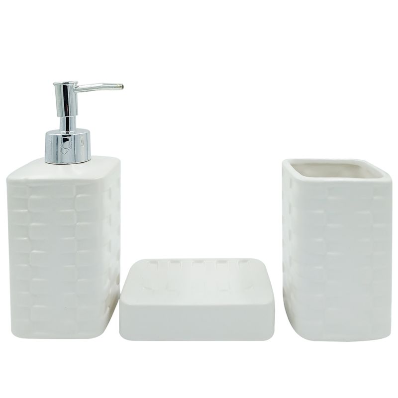 Kit Banheiro - Linha Atenas - Contém 3 Peças - 1 Dispenser (350ml) - 1 Porta Escova (12) - 1 Saboneteira (10,5cm) Composição: Porcelana Newway Código de Barras: 7908501007876 Peso: 0,987kg Ref: HVY0787