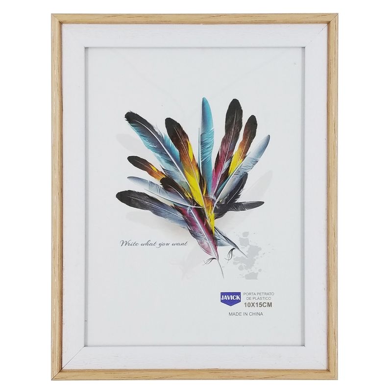 Porta Retrato - Decorativo Medidas Foto: 10x15cm Medidas Moldura: 13x18cm Composição: Plástico Cor: Marrom C/ Branco Javick Código de Barras: 7908501704614 Peso: 0,122kg Ref: P70021