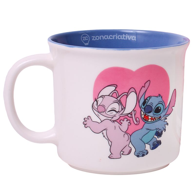 Caneca Tom Stitch e Angel 350ml em Cerâmica Zona Criativa