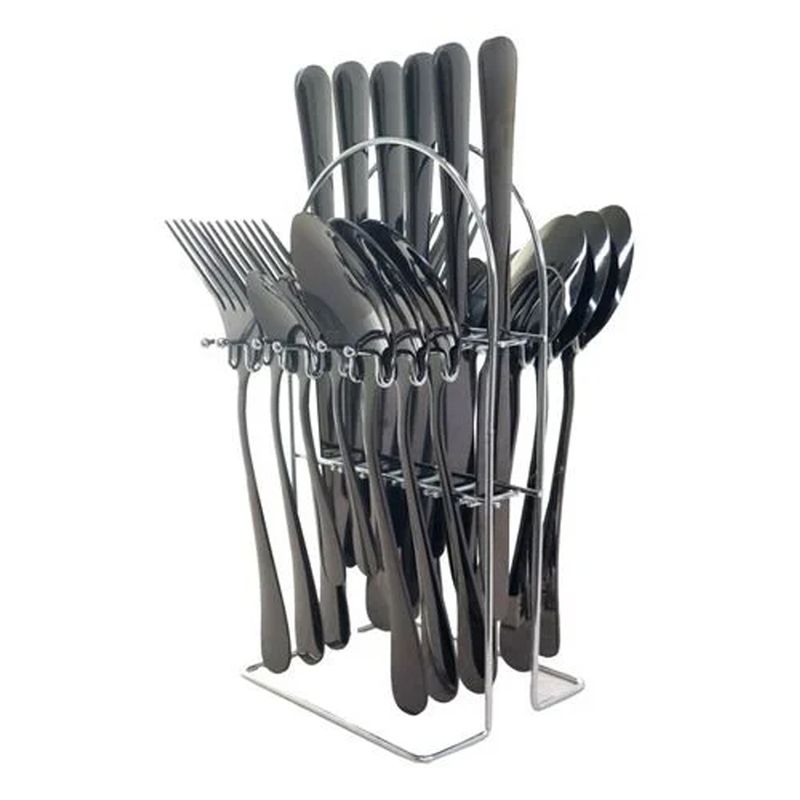 Jogo de Talheres Silver +Suporte em Metal KeHome
