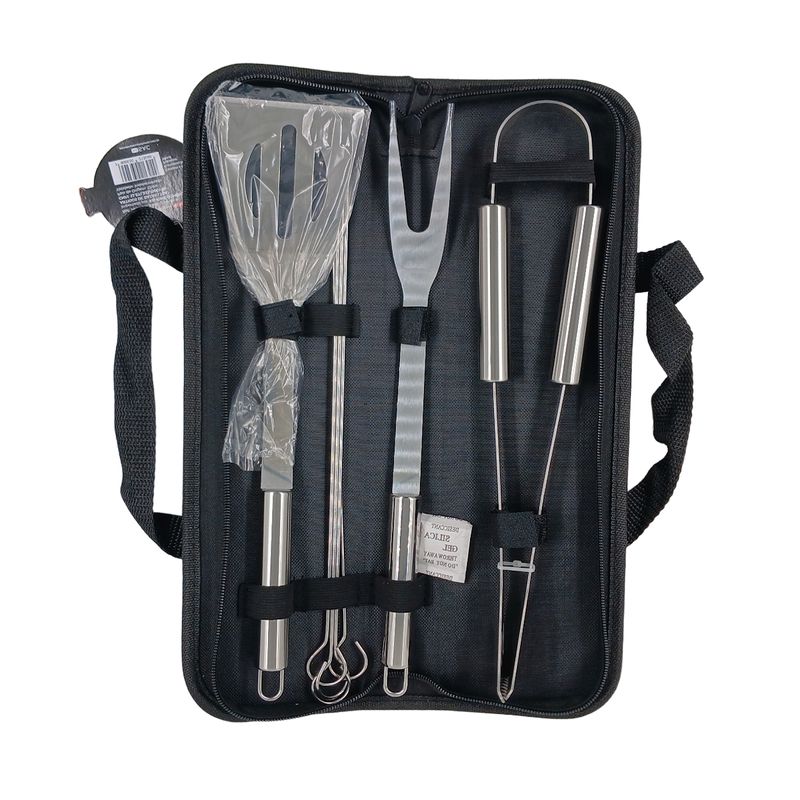 Contém: 7 Peças - 1 Pegador, 1 Garfo, 1 Espátula e 4 Espetos