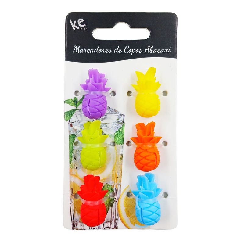 Kit Marcadores de Copo Abacaxi 6 Peças em Plástico Kehome