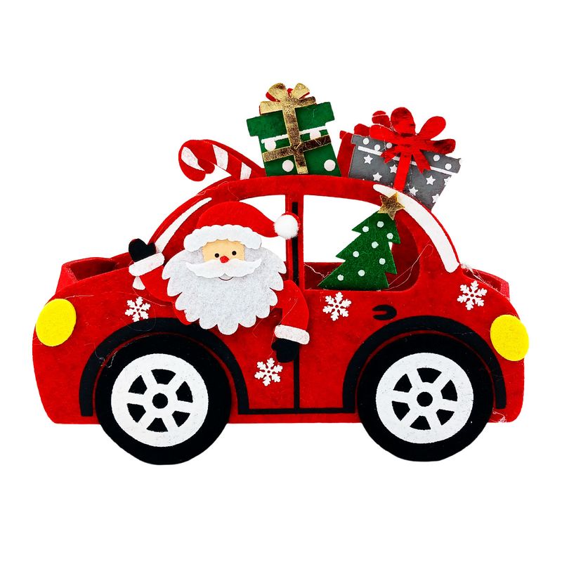 Cesto Natalino Carro Papai Noel 20x15,5cm em Feltro Fartex