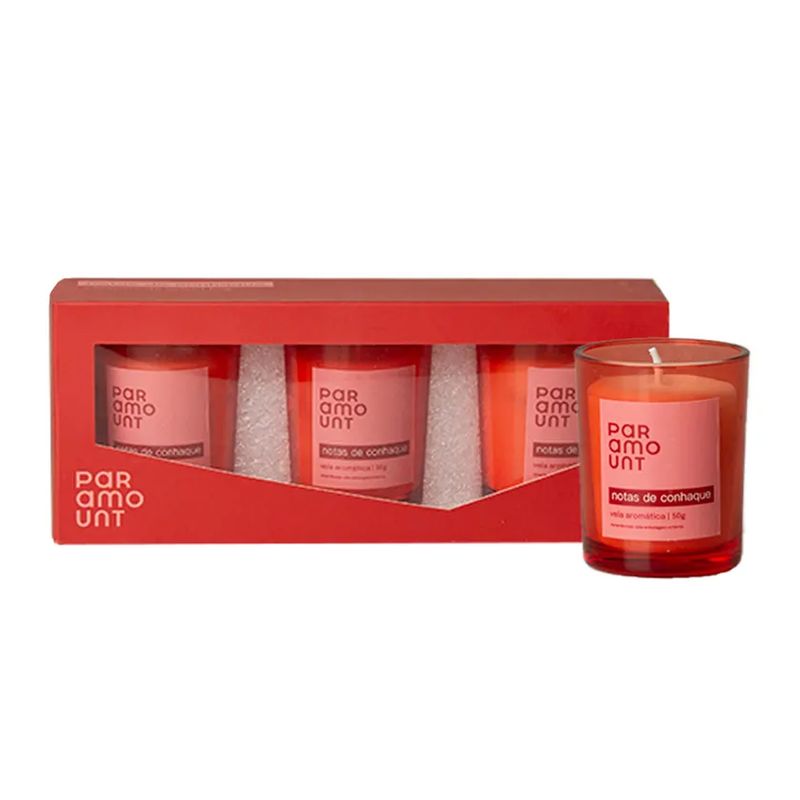 Jogo C/ 3 Vela Aromática Notas de Conhaque 50g em Vidro Paramount