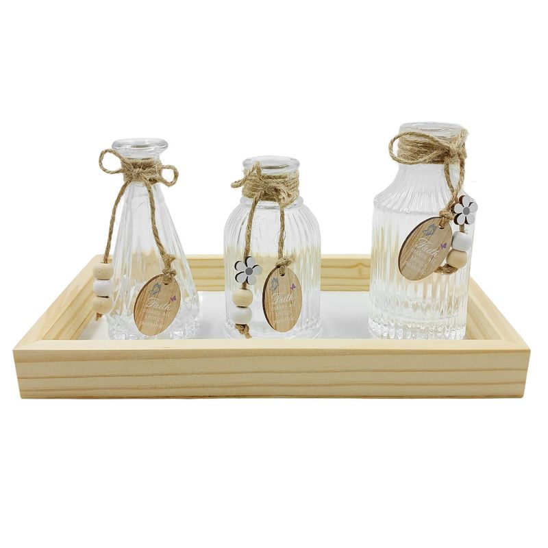 Kit Vaso Retangular C/ Bandeja 4 Peças em Vidro Mai Home
