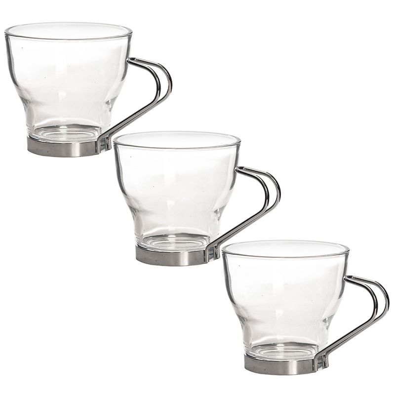 Jogo de Xícaras C/ Alça Metal 3 Peças 200ml em Vidro Wincy