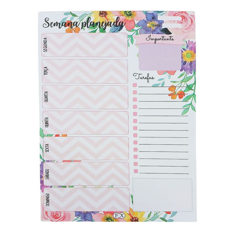 Bloco de Anotação Minha Semana C/ Imã 21cm em Papel Fu Xing