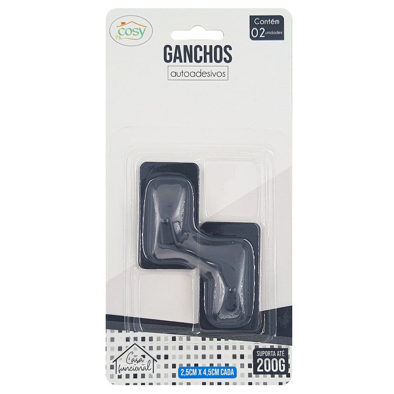 Jogo de Gancho -Autoadesivo -Suporta até 200g Contém: 2 Peças Medidas: 2,5x4,5cm Composição: Metal Fu Xing Código de Barras: 7908732344047 Peso: 0,035Kg Ref.: DT9476