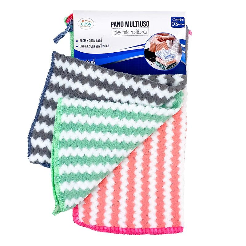 Jogo de Panos Multiuso 3 Peças 25cm em Microfibra Fu Xing