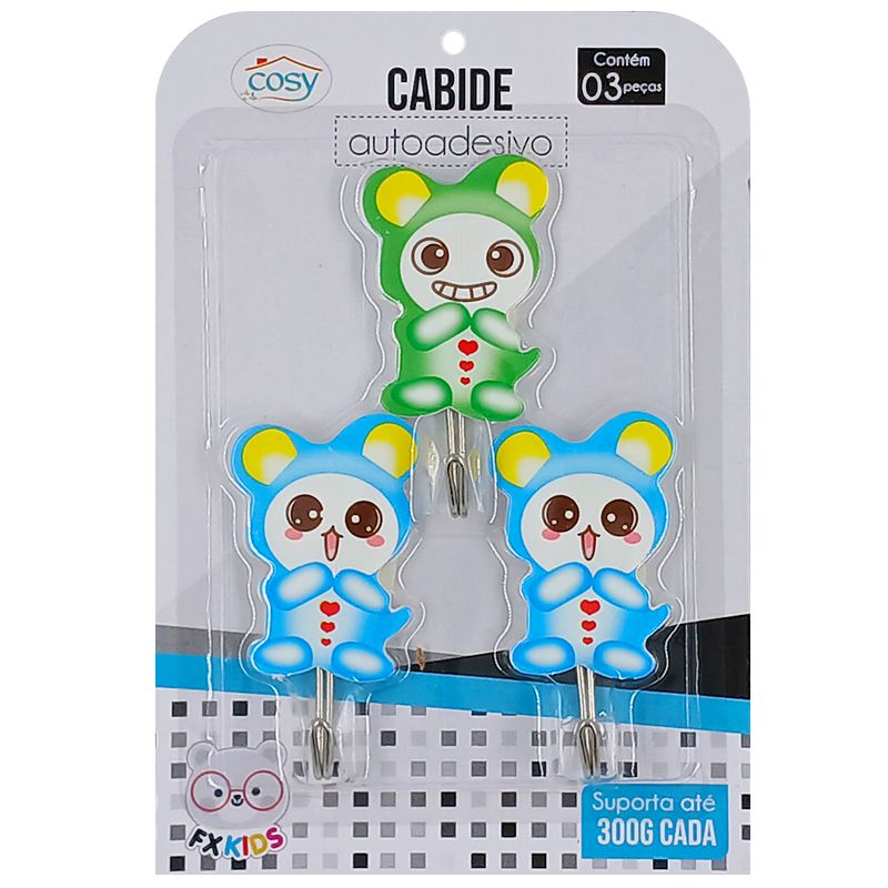 Jogo de Ganchos Infantil C/ Adesivo 3 Peças em Plástico Fu Xing