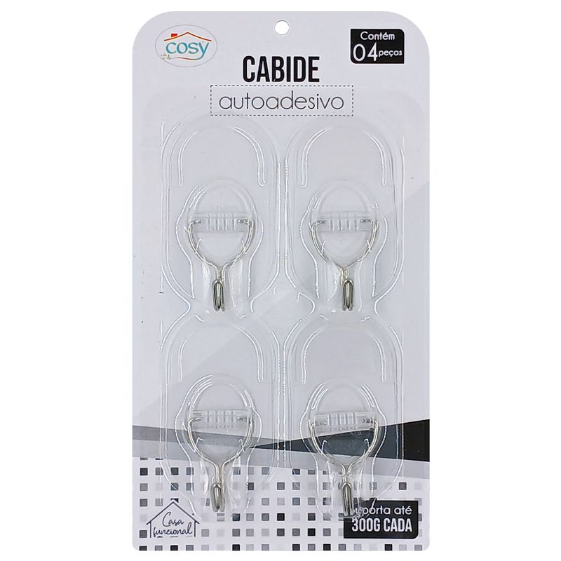 Jogo de Ganchos -Autoadesivo -Suporta até 300g Medidas: 4,3x8cm Contém: 4 Peças Composição: Plástico Fu Xing Código de Barras: 7908732345488 Peso: 0,050Kg Ref.: DT24101