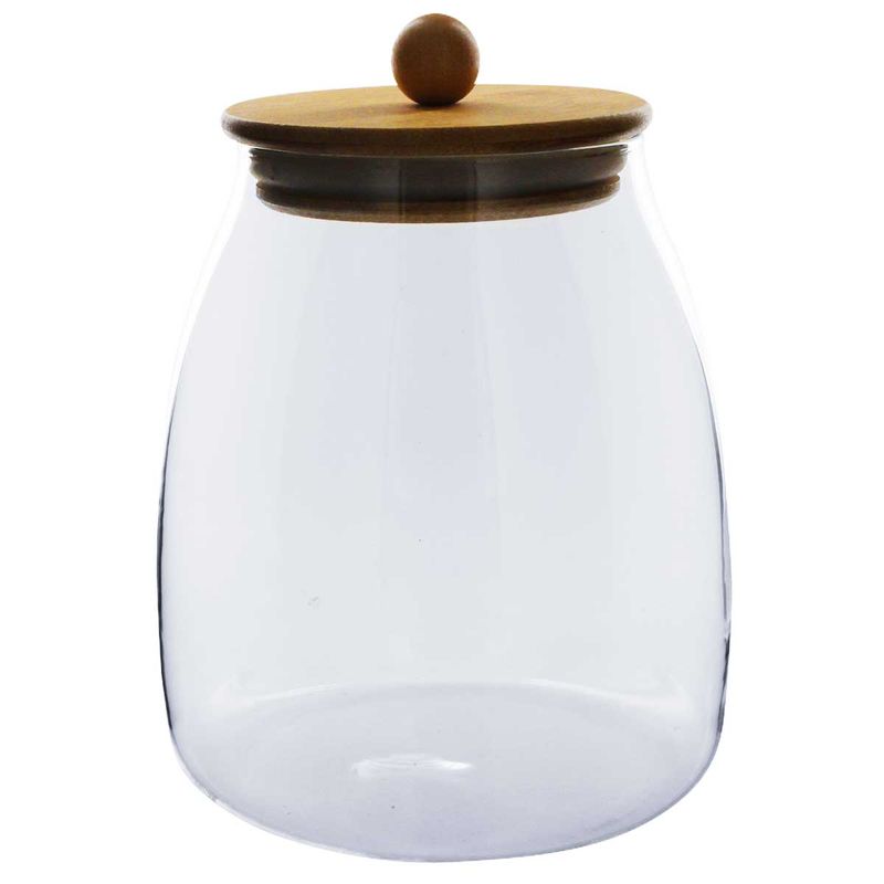 Pote Hermético C/ Tampa Bambu 1L em Vidro Fu Xing
