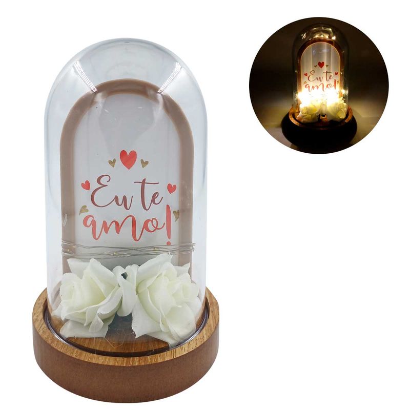 Luminária Cúpula Rosas P/ Foto 18cm em Plástico Fu Xing