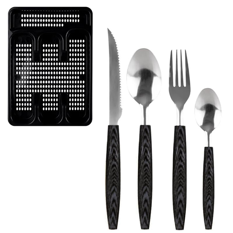 Contém: 25 Peças - 6 Colheres de Sopa, 6 Colheres de Sobremesa, 6 Facas, 6 Garfos e 1 Suporte