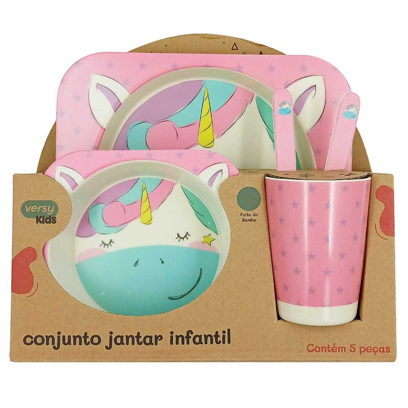 Contém: 5 Peças - 1 Prato, 1 Bowl, 1 Copo, 1 Colher e 1 Garfo