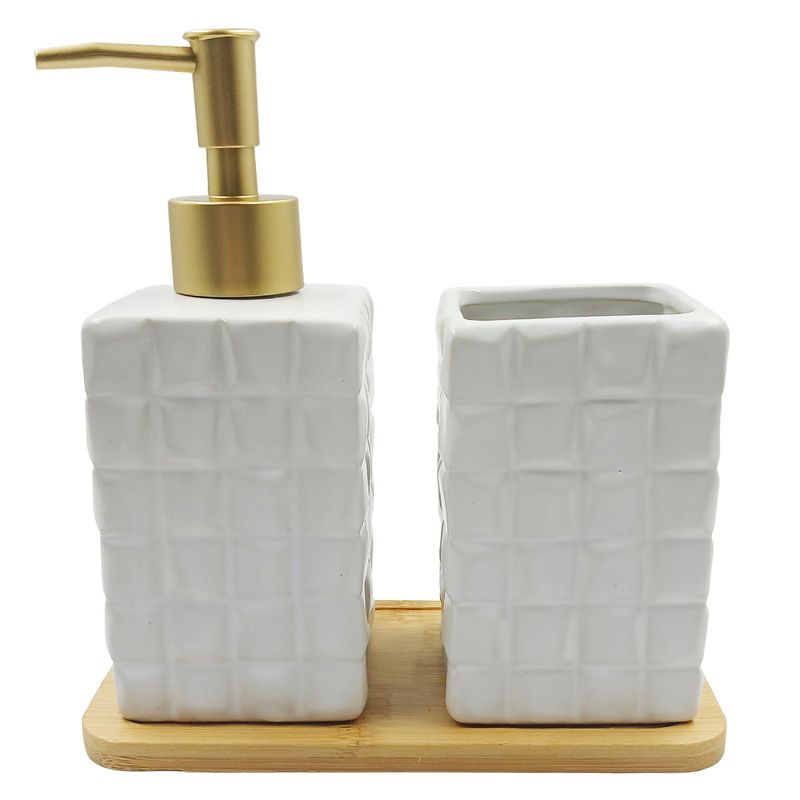 Kit Banheiro Relevo 3 Peças em Porcelana FWB
