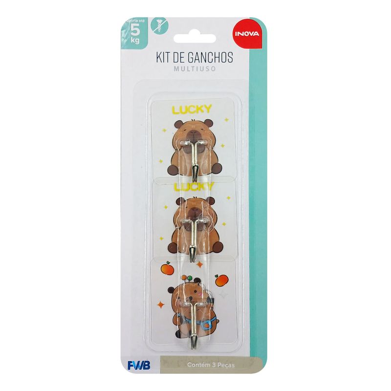 Jogo de Ganchos Capivara Adesivo 3 Peças em Plástico FWB