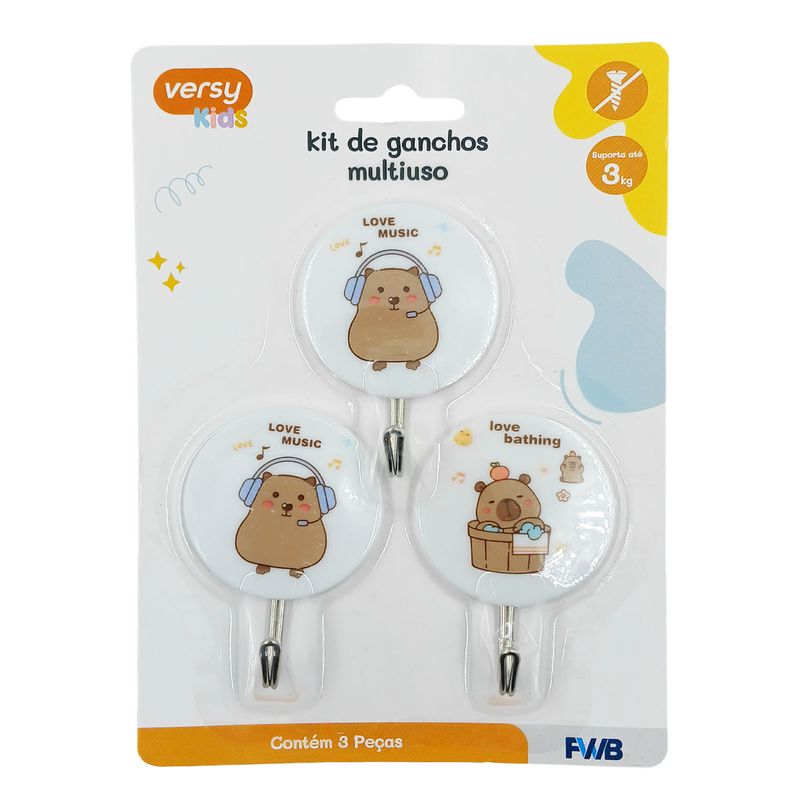Jogo de Ganchos Capivara C/ Adesivo 3 Peças em Plástico FWB
