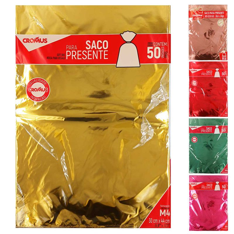 Saco P/ Presente Metalizada 30x44cm em Plástico Cromus