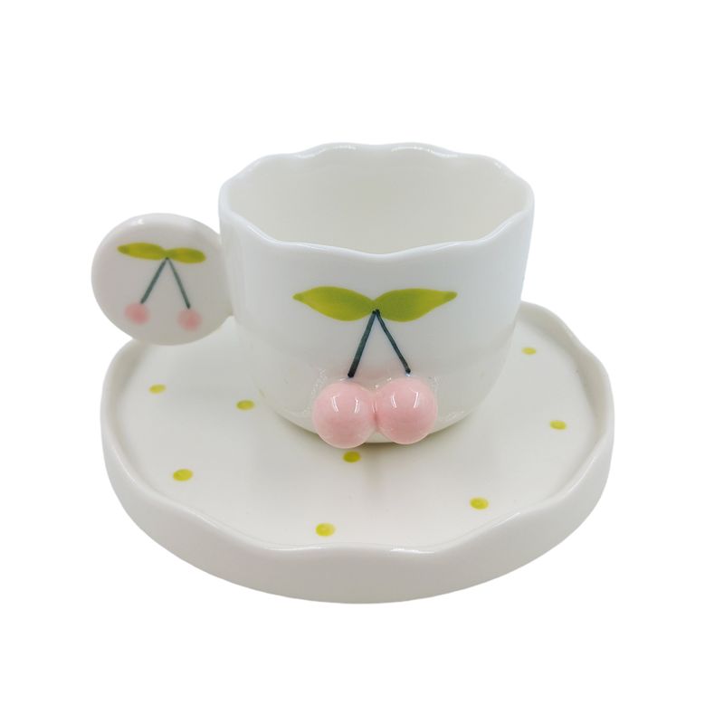 Xícara C/ Pires Cereja 150ml em Cerâmica Lila Home