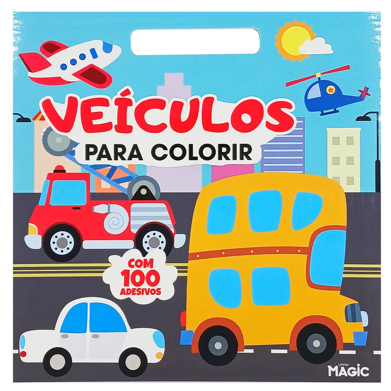 Livro Infantil Veículos 100 Adesivos 28cm em Papel Magic Kids