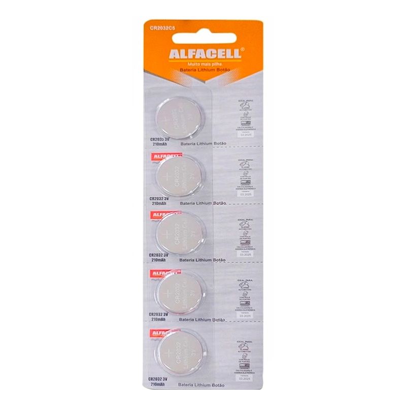 Bateria Lithium Botão 210MAH 5 peças Imporiente Código de barras: 7899386505598 Peso:0-021kg Ref:CR2032